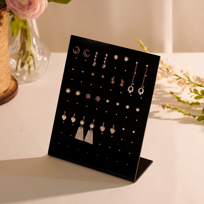 투명하고 깔끔한 분위기를 원한다면 아크릴 소재가 적합해요. 아크릴은 귀걸이를 더욱 돋보이게 하며, 먼지가 쌓여도 쉽게 닦아낼 수 있어 위생적이에요. 하지만 스크래치에 약하고, 간혹 저렴한 아크릴은 내구성이 떨어질 수 있으니 꼼꼼히 살펴보세요.